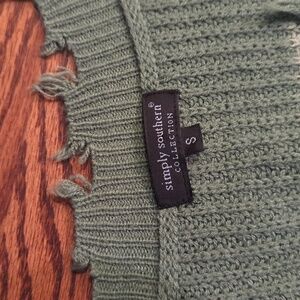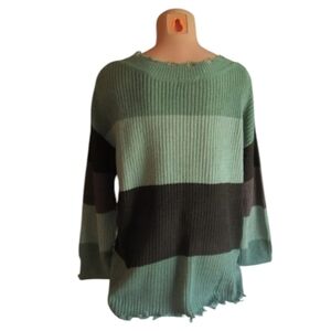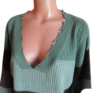 Simply Southern Striped Green and Brown v neck knit Sweater sz S