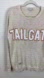 Get ready for tailgating season! This creamy beige loose knit sweater is the perfect pullover for those getting ready to root their team to victory. Large white fuzzy letters are outlined in sparkly copper tone sequins. Loose relaxed fit.