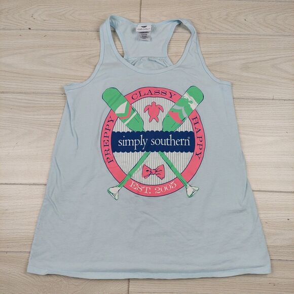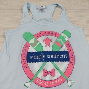 Simply Southern Tank Top Womens Large Preppy Classy Happy Racerback Beach Blue