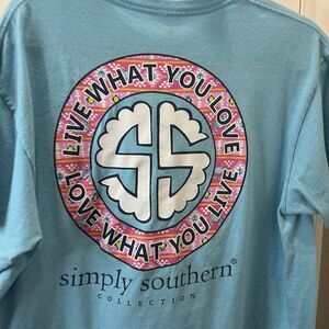Simply Southern Teal Blue What You Love Graphic Tee Shirt Womens Size L