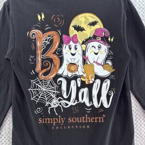 Simply Southern Top Womens S Black Ghost Halloween Boo Y'all Crew Neck