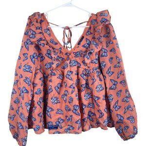 Simply Southern Top Womens Sz M Butterfly Blouse Festival Flowy Beachy Boho