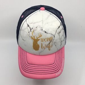 Simply Southern Trucker Hat Trophy Wife Pink and Navy Blue adjustable backstrap