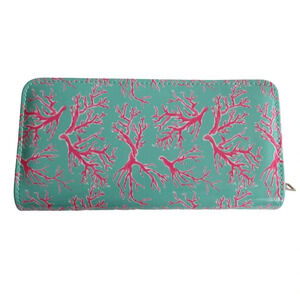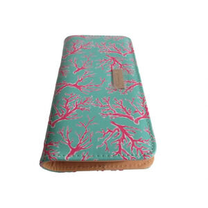 Simply Southern Turquoise Wallet Coral Reed Hot Pink Print Zip Around Large