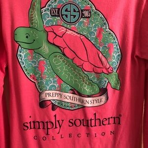 Simply Southern brand long sleeve tee size small. Tee is a bright pink (actual color may vary from pictures) and has a sea turtle on the back. Simply Southern is written on the sleeve. No rips, stains, or smells.