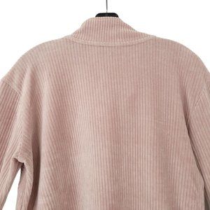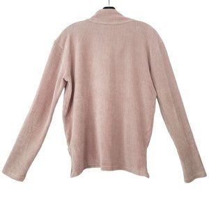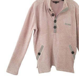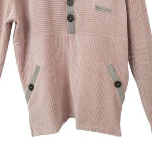 Simply Southern Velour Corduroy Pink Mauve Pullover Top Womens M Long Sleeve Zip Sides Button Pockets