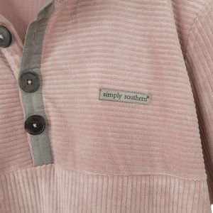Simply Southern Velour Corduroy Pink Mauve Pullover Top Womens M Long Sleeve