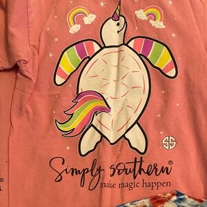Bright Simply Southern tees with playful graphics. Features elephants, lemons, and tie-dye patterns. 5 shirts total
