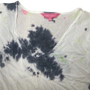 Chic dress with a black tie-dye design on white fabric. Perfect for casual outings. Oversize