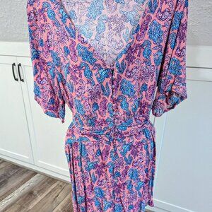 NWT Simply Southern Romper button front tie back. Cute seahorse print beautiful colors. Size Large