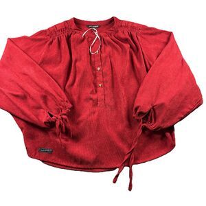 Simply Southern Women Corduroy Balloon Sleeve Top Preppy Boho Red Large G208