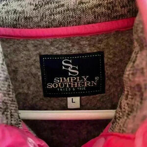 Simply Southern Women’s 1/4 Snap Pullover Size Large Pink Pockets Fleece