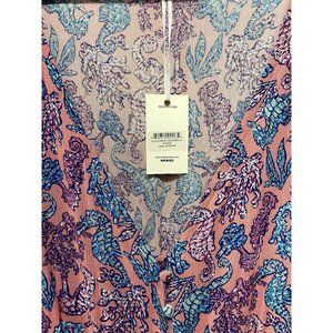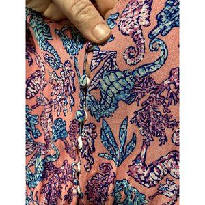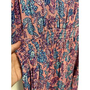 Simply Southern Women's Casual Romper Beach Seahorse Pink Blue Size XL NWT