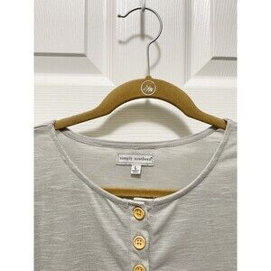 Simply Southern Women's Henley Shirt Long Sleeve Size L Gray Lightweight