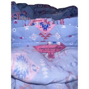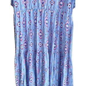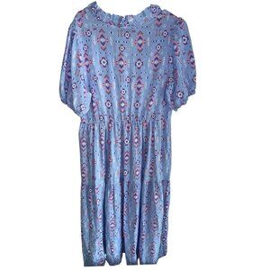 Simply Southern Womens Puff Sleeve Tiered Maxi Dress Sz L Blue Pink Aztec . No stains or holes.