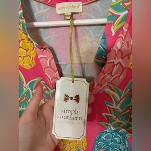 Simply Southern Women's S Pink Pineapple Print Sleeveless Tank Top