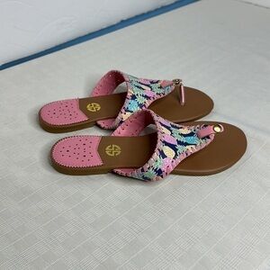 Pink Blue Pineapples Thong Strap Tropical Womens Size 7