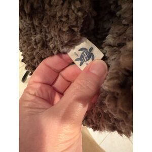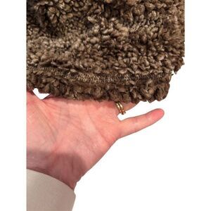 The Simply Southern jacket is a women's Standard L, mid-length, 1/4 zip pullover made from ultra-soft faux fur Sherpa fleece. It features a relaxed fit with long sleeves and a solid brown color, making it ideal for casual occasions during the fall season. The jacket's warm and plush design ensures comfort, while its machine washable fabric offers easy care. This pre-owned item shows some wear, especially on the back of arms.