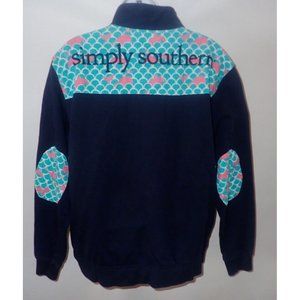 Simply Southern Women’s Size L Long Sleeve 1/4 Zip Sweatshirt Elbow Patch Preppy Preowned in excellent condition pull over style with 1/4 zip neckline Classic preppy style with spell out on the back and elbow patches No rips, tears or stains Length form shoulder to hem is 25" Chest from underarm to underarm is 23" Nice weight cotton sweatshirt Great for all seasons and all casual wear I have other items like this listed Thank you for looking!