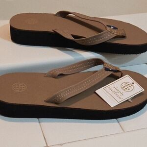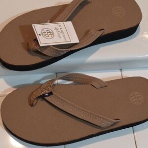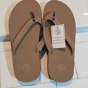 Simply Southern Womens Size S 5.5 -6.5 Leather Flip Flop Tan