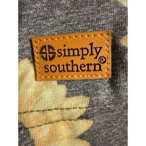 The Simply Southern Women's Sunflowers Gray Open Front Cardigan in size S/M is a colorful and stylish sweater featuring a sunflower pattern. Made from a blend of polyester, spandex, and cotton jersey fabric, this cardigan has long sleeves with cuffed wrists and an open neckline. It also includes pockets for added convenience. The brand, Simply Southern, is known for its character and theme, making this cardigan a perfect addition to any woman's wardrobe.