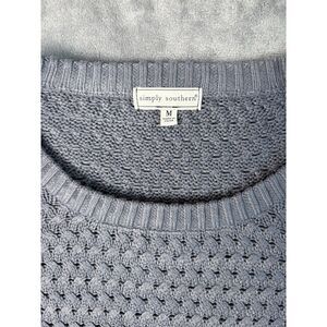 Cozy grey (stone) tunic style sweater from Simply Southern in women’s size Medium. Knit texture with side snap button details and a longer curved hem that pairs well with leggings or jeans. Soft, easy to wear, and great for layering.