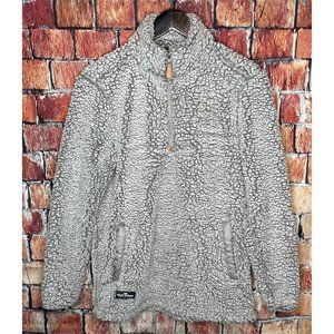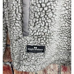 Simply Southern Women’s Sweater Small Gray Sherpa 1/4 Zip Pullover Jacket. Pre-owned in great used condition. Measurements are approximate arm pit to arm pit laying flat 19”; sleeves 24”; shoulders 16”; length 28”.