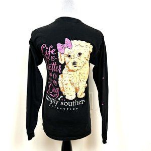 Simply Southern Womens T-Shirt Size Black Small Life is Better ..With My Dog L/S