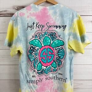 Simply Southern Women's Tie Dye Short Sleeve Tee Just Keep Swimming Size Large