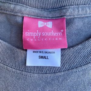 Brand: Simply Southern. Women's top/shirt, crew neck, long sleeve, graphic on the back. Size: S. Color: gray. Fabric: 100% cotton. Graphic: All that I love about holidays.