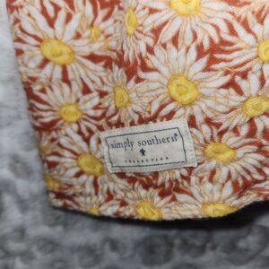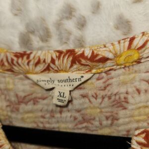 Simply Southern XL Floral Blouse Button Raw Edge Ruffle Crop Boho Festival Gauzy