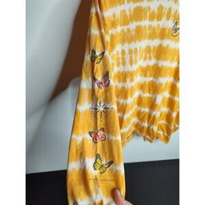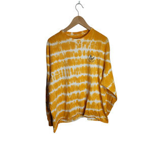Vibrant yellow tie-dye design. Inspirational graphic on back. Comfortable long sleeves.