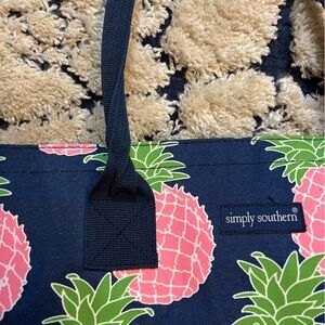 Simply Southern large beach/travel bag- navy and pink pineapple EUC