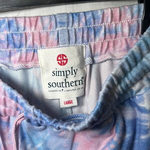 Simply Southern pink & blue (cotton candy) tie dye jogging pants size large. Drawstrings & slip pockets