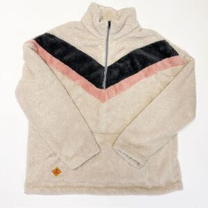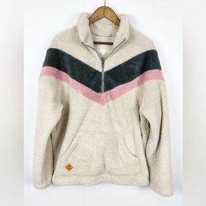 Simply Southern 1/4 Zip Sherpa Pullover Cream Stripe Size XXL
