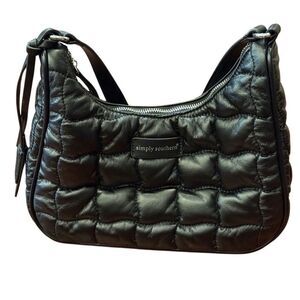 Simply Southern Faux Leather Black Puffy Hobo Bag