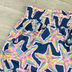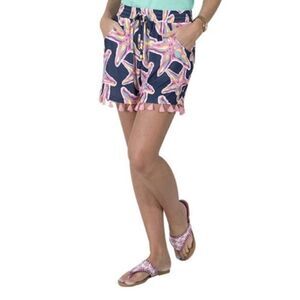 Simply Southern Tassel Hem Starfish Print Elastic Waist Shorts Blue Pink S/M