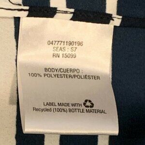 Elevate your wardrobe with this stylish Simply Styled blouse in size XL. The multicolor striped pattern adds a pop of color to your outfit, while the button-down neckline and long sleeves with roll tab details give it a classic and preppy vibe. Perfect for a business occasion or a casual outdoor outing, this blouse is versatile and machine washable for easy care. With its comfortable regular fit and button closure, this blouse is a must-have addition to any woman's wardrobe. The polyester material ensures durability and the accents of buttons and collar add a touch of elegance. Get ready to turn heads this fall, winter, or spring with this beautiful blouse made in Indonesia.