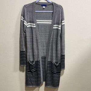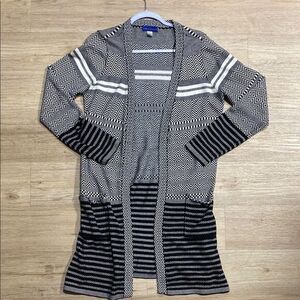 Simply Styled by Sears Black & White Geometric Open Cardigan Sweater M