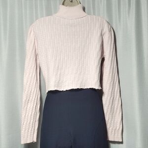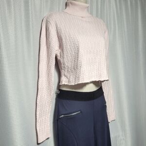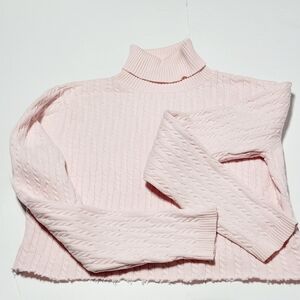 Simply Sweet Pink Turtleneck Cable Knit Long Sleeve Raw Edge Sweater (S)