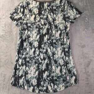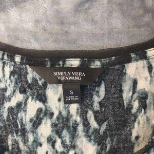 Elevate your basics with this Simply Vera Vera Wang short-sleeve top, featuring an abstract painterly print in grayscale tones. Made of soft, stretch polyester with a high-low hem and subtle texture, it’s a modern yet wearable art piece. Perfect for layering, office casual, or styled with denim and boots for an urban minimalist look. Size Small. Excellent condition.