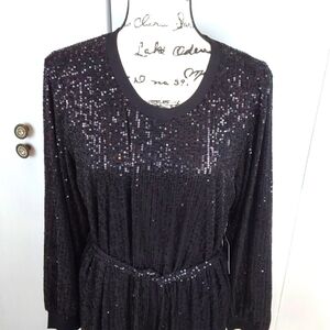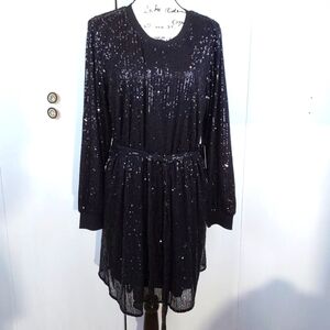 Simply Vera- Black Fully Sequined Longsleeve Dress Sparkle Holiday Party Sz.XL