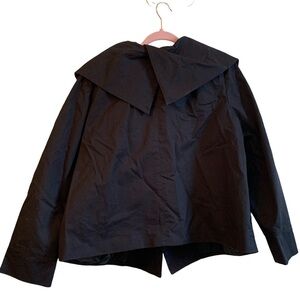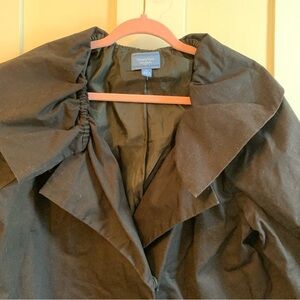 Elegant black jacket with ruffled collar. Perfect for any occasion. EUC