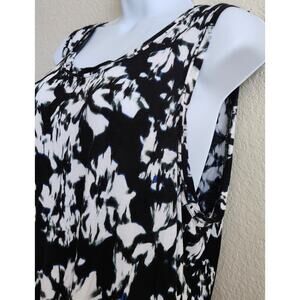 Simply Vera Black White Green Floral Print Top XL Sleeveless Lightweight Soft