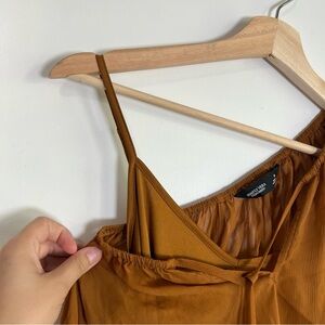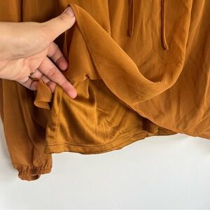 Simply Vera Burnt Orange Tie Neck Balloon Sleeve Shirred Blouse, Size Medium