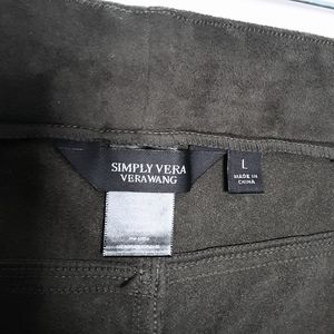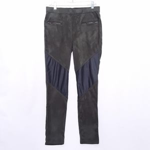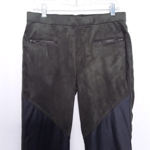 Simply Vera Faux Olive Green Suede & Faux Black Leather Patches Pants Size Large