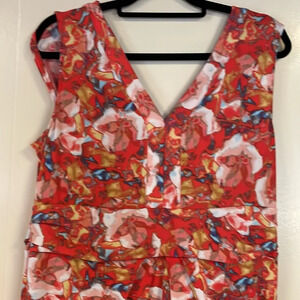 Simply Vera Floral Dress VNeck in front and back Sleeveless. Has layered material at bust pit to pit 21” Shoulder to hemline 32”. Excellent condition