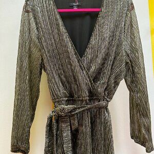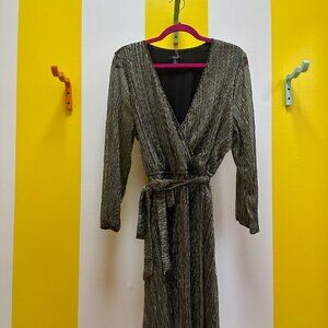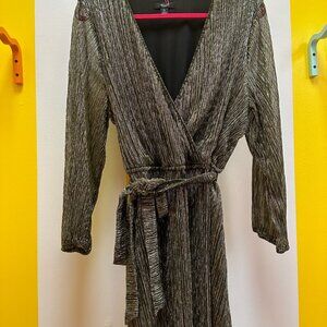 This shimmery number is extremely versatile and can be worn to work or a night out. The wrap style is extremely flattering on all body types and the metallic shimmer brings a sexy style to this dress. Size XL from a non-smoking home.