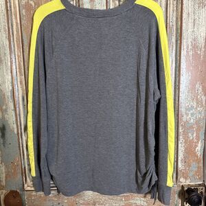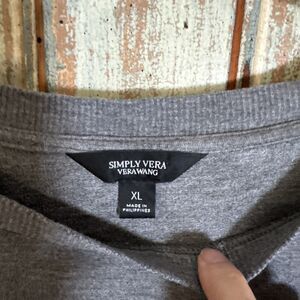 Simply Vera Wang grey knit sweater size XL. Super cute bright yellow stripes running down each arm from collar to cuff. Side seems have drawstrings which adds some sass. Very soft material scoop neck. Excellent preowned condition. I see no flaws. See photos for details.