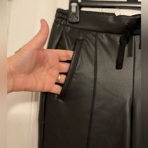 Gorgeous, soft leather look pocketed, drawstring, elastic waist, ladies extra small pants straight leg